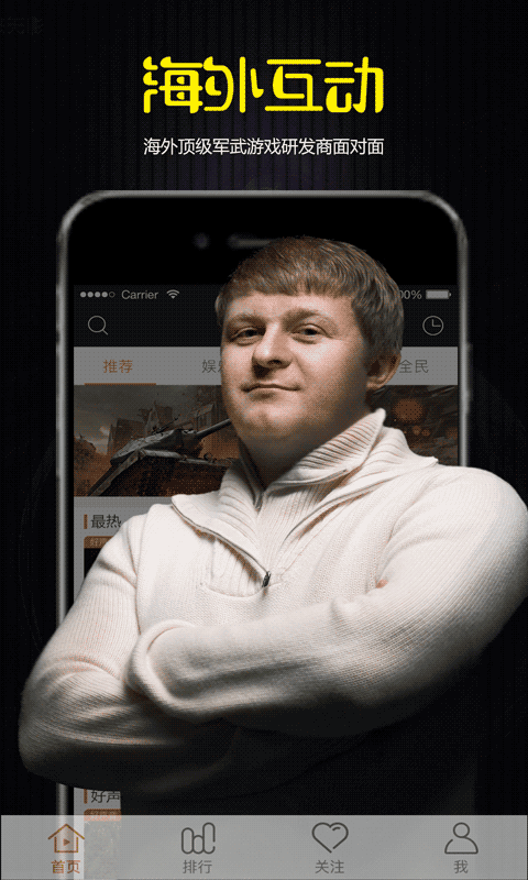 超多《坦克世界》、《戰(zhàn)艦世界》等游戲的賽事直播,“羊駝”、“納蘭”、“戰(zhàn)場”及”紫楓”等知名主播傾情加盟,更有國內(nèi)知名軍事大咖,閃耀登場,還在等什么?一起來嗨吧!~