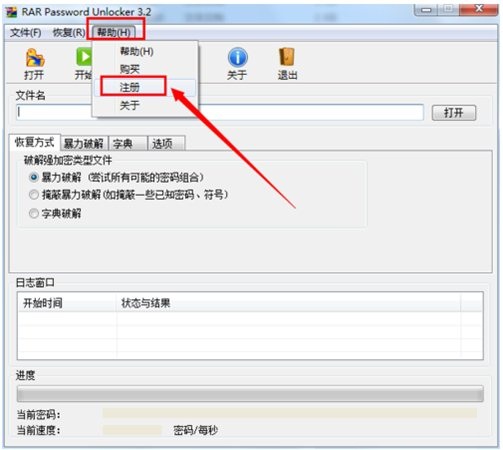 2、解壓并運行其中的可執(zhí)行程序,點擊“幫助”->“注冊”項,然后輸入任意內(nèi)容完成注冊操作。