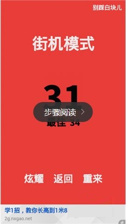 街機模式:游戲結(jié)束之后還可以分享或者重來;高分攻略:注意力集中,手要快。