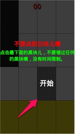 街機模式:按開始,屏幕的方塊不停向下滾動,用手指連續(xù)按黑色方塊,間斷按或者按到白塊就輸了,有速度的限制。