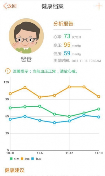 1:健康管理進一步完善,功能更加強大,子女可遠程檢測身體數(shù)據(jù),根據(jù)測量血壓,測量血糖等。由專業(yè)醫(yī)師給出健康報告。2:增加健康預測功能,根據(jù)老人測量的數(shù)據(jù),結(jié)合大數(shù)據(jù)分析,給出健康預測的報告,可根據(jù)預測及時調(diào)整生活方式,及時干預。