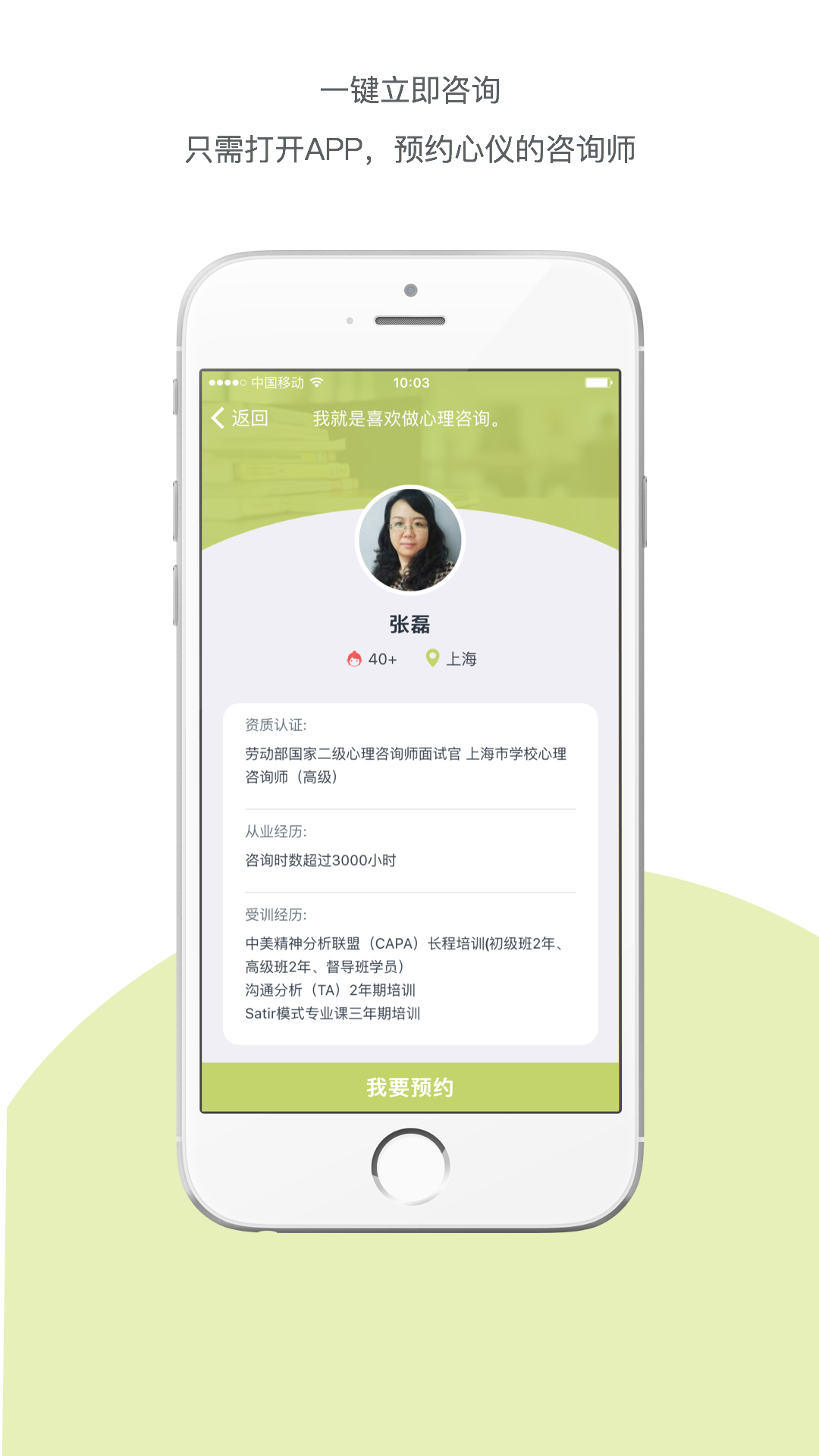 1.7x24小時(shí)接受咨詢(xún)預(yù)約(面詢(xún)除外)2.顧小煩專(zhuān)業(yè)資質(zhì)心理咨詢(xún)師團(tuán)隊(duì),均從業(yè)五年以上