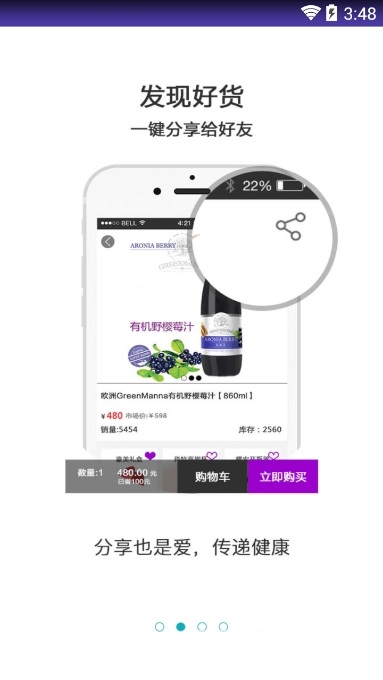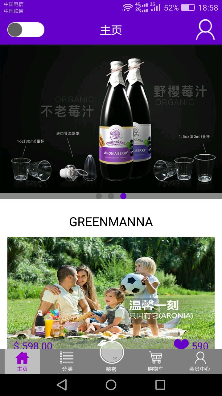 野櫻莓,是云天團(tuán)旗下主營GreenManna野櫻莓汁的購物類APP。APP設(shè)計采用紫色為主色系,研發(fā)理念是“一切以用戶體驗為宗旨”。野櫻莓APP設(shè)計初衷:野櫻莓立足于云天團(tuán)“健康、美味、營養(yǎng)、安全”的理念下,處于跨境電商火熱的時代,為了使消費(fèi)者更快捷、方便的能及時購買到GreenManna野櫻莓汁,開發(fā)了APP軟件這一購物渠道。