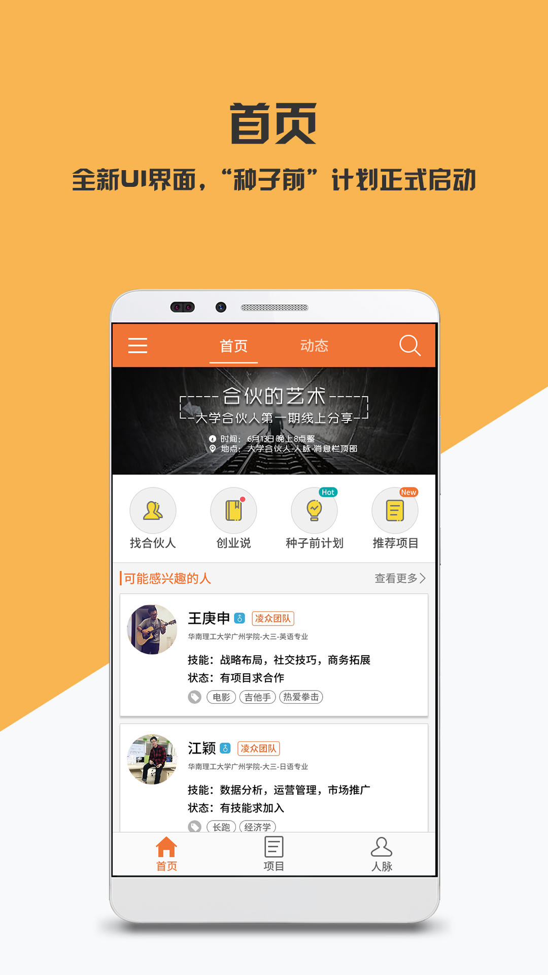 一鍵發(fā)布您的項目和需求,坐等靠譜創(chuàng)業(yè)伙伴找上門。也能看見別人發(fā)布的項目需求,可以選擇一個適合自己的項目團(tuán)隊,加入創(chuàng)業(yè)行列。