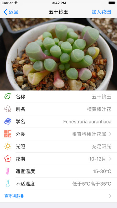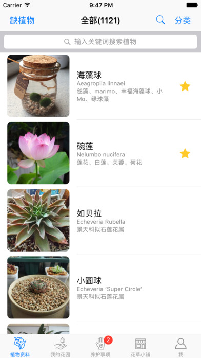 1、根據(jù)季節(jié)、當(dāng)?shù)靥鞖?、植物特性、養(yǎng)殖方式來個(gè)性化提醒澆水、施肥、換水、添加營養(yǎng)液、修剪,繁殖等養(yǎng)護(hù)需求;2、提供植物的詳細(xì)信息,養(yǎng)護(hù)指南,教你如何辨別容易混淆的品種;