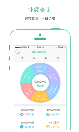 老板手機查詢店鋪業(yè)績、員工提成、項目排行等店鋪動態(tài)