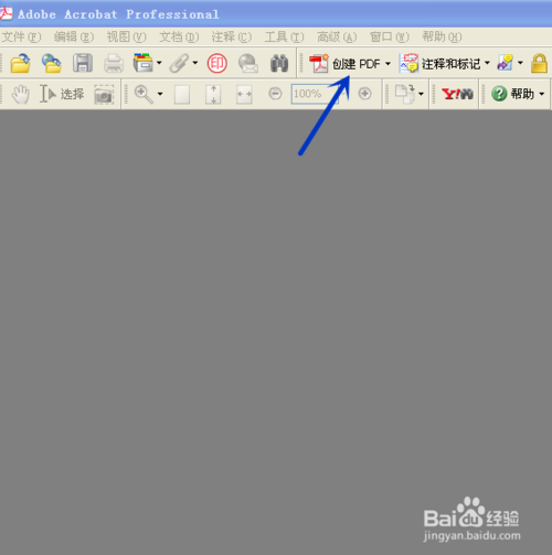 打開(kāi)Adobe Acrobat 7.0 Professional,點(diǎn)擊如箭頭所示的"創(chuàng)建PDF"。
