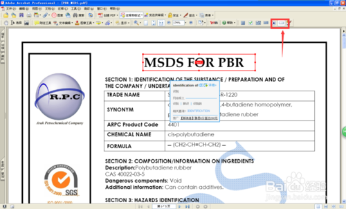 首先,用Adobe Acrobat 7.0 Professional軟件打開(kāi)文件,選擇【文本域工具】,然后將要修改的部分選中。