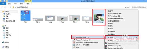 或者,直接選中待轉(zhuǎn)換的jpg文件,右擊選擇打開(kāi)方式--Adobe Acrobat 7.0;