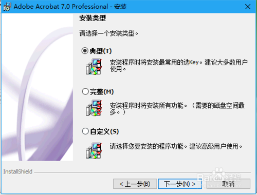 在Adobe Acrobat 7.0 Professional安裝窗口安裝類(lèi)型下選擇典型點(diǎn)擊下一步,目的地文件夾的存放下點(diǎn)擊下一步。
