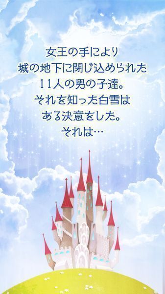 很久很久以前的某天在王宮內(nèi)散步的白雪公主,路過王后的房間時(shí)聽到了奇怪的聲音:“鏡子啊鏡子!快映出這個(gè)國(guó)家的美男吧!”好奇的白雪公主扒開門縫,發(fā)現(xiàn)王后面前的鏡子中出現(xiàn)了一位十分帥氣的青年,隨后,王后拉起這位青年的手消失在了房間的盡頭?!皠偛攀鞘裁垂??”不過她立刻停止了詫異,產(chǎn)生了一個(gè)新的想法——“我把這面有魔力的鏡子偷過來研究一下不就好了?”就這樣,白雪公主與11位美男的故事,就此拉開了帷幕。