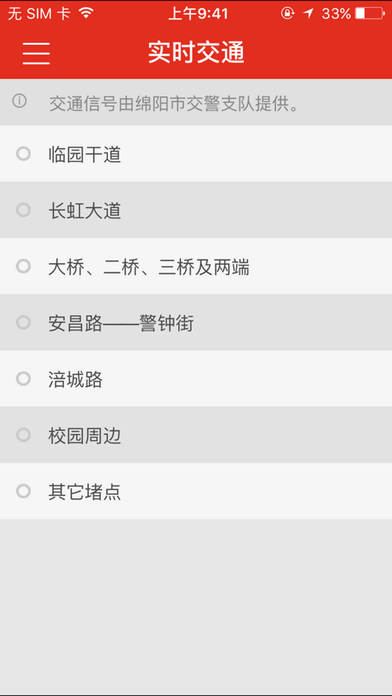 在直播綿陽app您可以了解到綿陽最新發(fā)生的大小事件;在這里,可以看到綿陽廣播電視臺一、二、三、四套電視直播節(jié)目,可以聽到96.7、91.2和103.3三套廣播直播節(jié)目;在這里,有綿陽市區(qū)主要交通要道、重大交通節(jié)點、堵點的實時路況畫面;在這里,今后可以輕松實現(xiàn)生活信息查詢(如水電氣、交通違章信息查詢等)、便民綜合服務(wù)、美食推薦、道路交通信息;在這里,將會實現(xiàn)本地機(jī)票銷售、高鐵火車票的手機(jī)預(yù)訂。