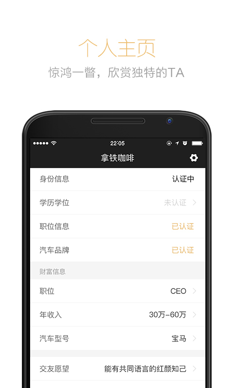 YYLove是專為優(yōu)質(zhì)成功男士和年輕氣質(zhì)女神打造的高端真實交友社區(qū)。本社區(qū)的男生用戶定位于金領(lǐng)用戶群體,擁有良好的教育背景和收入保障,很多用戶具有海外留學(xué)背景。女生用戶定位于年輕時尚的都市麗人。【軟件特點】