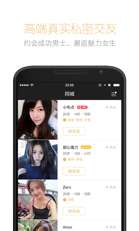 1.同城約會,基于LBS實時定位,隨時遇見身邊氣質(zhì)女神,成功男神2.人工審核,采用人工審核機(jī)制,對資料,照片進(jìn)行審核,保障交友真實安全