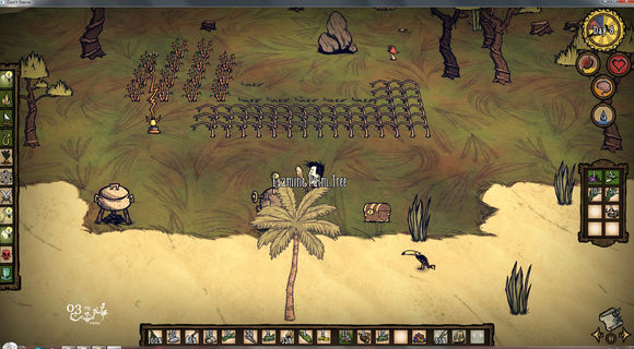 接下來的時間里就是:鏟樹苗,看地形,看島上資源,找窩家的位置。(食物問題可以不用糾結(jié),前期生吃沒關(guān)系,腦殘低了解鎖一個科技就回來了。)