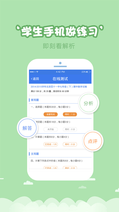 1、老師可15秒布置一次作業(yè),10秒發(fā)送一次富媒體的班級消息,作業(yè)批改進(jìn)入移動時代,老師再也不抓狂啦2、國內(nèi)第一家真正實(shí)現(xiàn)移動設(shè)備上使用智能筆做主觀題的應(yīng)用,徹底打破在線作業(yè)類應(yīng)用只能做客觀題的尷尬,實(shí)現(xiàn)測練過程的閉環(huán)