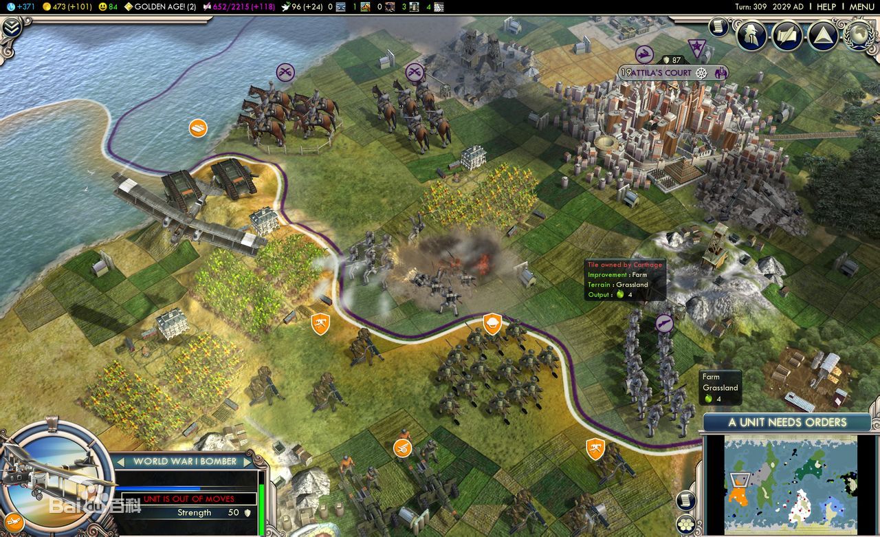 3問(wèn):我都建了,而且我的城很多基本整個(gè)地圖我都占據(jù)了差不多能有20到30個(gè)城那,每回合也就100左右。