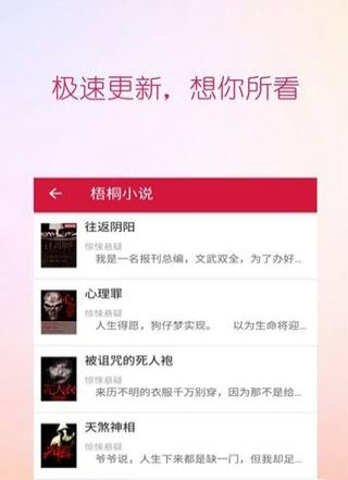 梧桐小說(shuō)app,專注為讀書(shū)愛(ài)好者提供優(yōu)質(zhì)小說(shuō)應(yīng)用。您在梧桐小說(shuō)看到的所有小說(shuō)內(nèi)容,均由正版小說(shuō)作家創(chuàng)作并授權(quán)提供。梧桐小說(shuō)全站閱讀無(wú)廣告,她將成為您的移動(dòng)掌上閱讀書(shū)庫(kù),讓您享受優(yōu)質(zhì)的閱讀體驗(yàn)。超好用的網(wǎng)文小說(shuō)電子書(shū),是您追書(shū)的閱讀神器。