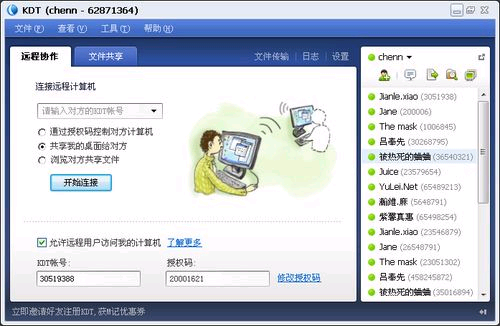 KDT是一款功能強(qiáng)大操作簡(jiǎn)單,可穿透防火墻的遠(yuǎn)程協(xié)作軟件,適用于遠(yuǎn)程計(jì)算機(jī)的訪問(wèn)及管理、為客戶(hù)做遠(yuǎn)程技術(shù)支持或搭建內(nèi)部線(xiàn)即時(shí)協(xié)作環(huán)境。
