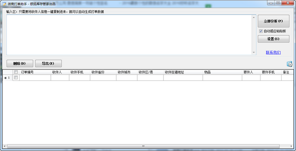 如果是下級代理已整理好多個訂單,先取消“自動感應粘貼板”選項;再從記事本復制多個訂單信息復制到軟件的“輸入?yún)^(qū)”,然后點“立即分析”按鈕,軟件將自動分析并生成整齊的訂單列表。