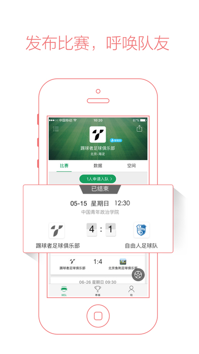 【球隊(duì)管理】①一鍵發(fā)布比賽、報(bào)名;比賽自動(dòng)提醒;