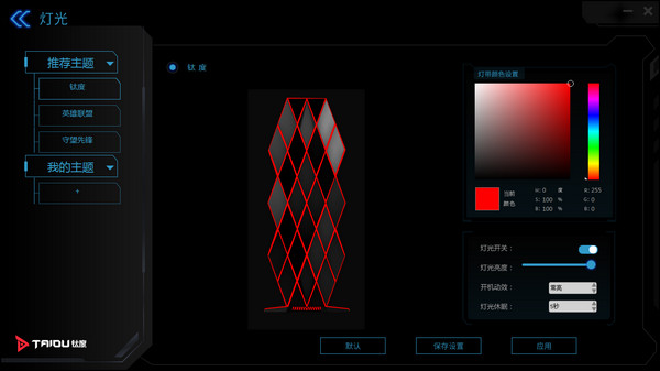 安裝后,打開(kāi)軟件,進(jìn)入燈光調(diào)節(jié)功能,目前有英雄聯(lián)盟、守望先鋒的主題可供選擇。