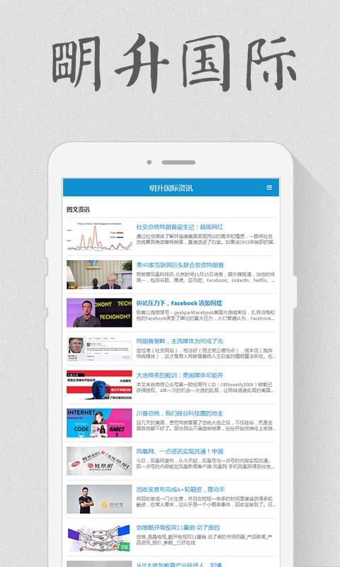 明升國(guó)際app是一款專注于網(wǎng)絡(luò)咨詢的手機(jī)閱讀軟件。明升國(guó)際匯聚了網(wǎng)絡(luò)牛人、網(wǎng)絡(luò)公司動(dòng)態(tài)、電子商務(wù)和網(wǎng)絡(luò)游戲資訊,方便廣大讀者都能輕松獲取各類網(wǎng)絡(luò)資訊信息。