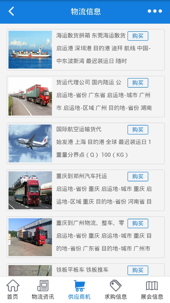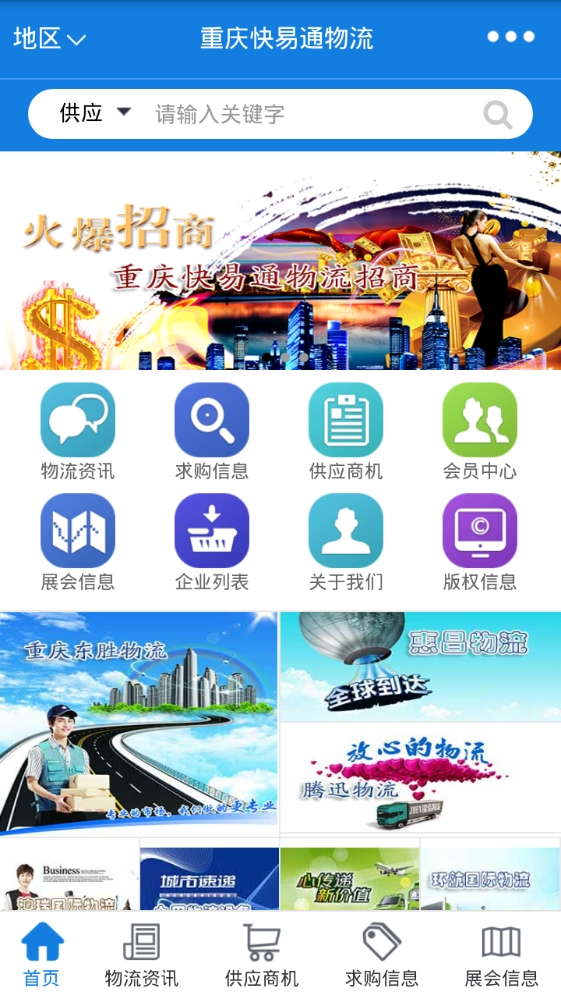 重慶快易通物流是中國信息化產(chǎn)業(yè)發(fā)展中心認證的誠信云商移動互聯(lián)網(wǎng)客戶端;為廣大從事物流行業(yè)的朋友以及企業(yè)提供了良好的信息交流與發(fā)布平臺;海量物流行業(yè)新資訊、供應(yīng)商機及求購信息、優(yōu)秀物流企業(yè)、展會信息、會員中心等多個模塊為您帶來全面的物流資訊,歡迎使用重慶快易通物流!