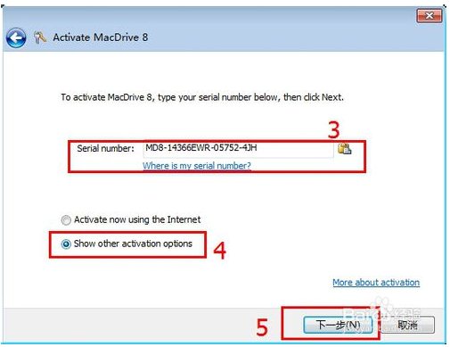 粘貼到Serial number 里面,點Show other activation options ,再點下一步