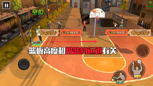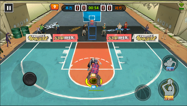 《街頭籃球》手游操控簡單,非常容易上手,通過屏幕左側(cè)搖桿控制方向,右側(cè)三個(gè)按鍵來完成進(jìn)攻時(shí)的投/扣籃、傳球、突破,以及防守時(shí)的籃板、盯防、搶斷。