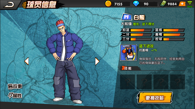皇叔(第一籃板C),他的初始籃板面板值為:403