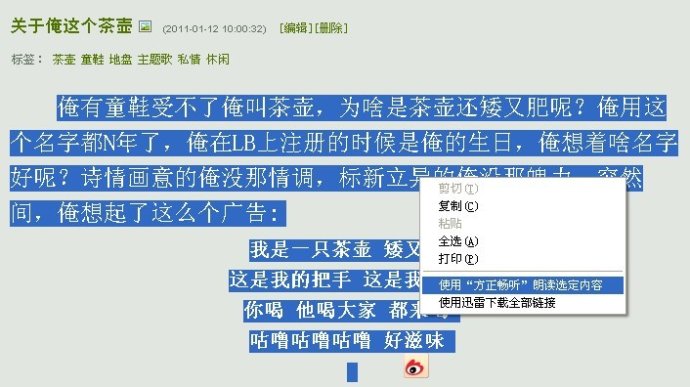 IE中用方正暢聽朗讀網(wǎng)頁的操作方法:1.在IE中打開網(wǎng)頁,在網(wǎng)頁上選擇一段文字。