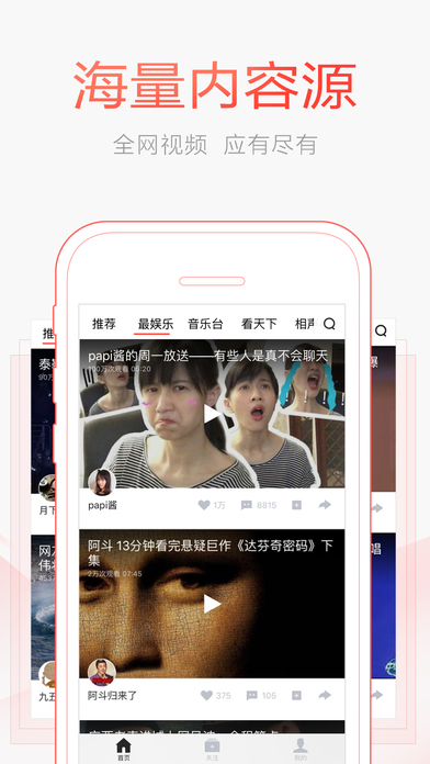 【內(nèi)容齊全】內(nèi)容超全的視頻 app。搞笑、新聞、熱點(diǎn)、綜藝、明星、美女、海外、紅人、財(cái)經(jīng)、音樂(lè)、相聲、小品……你想看的,都在這里。24 小時(shí)刷不停,填充你所有碎片時(shí)間。