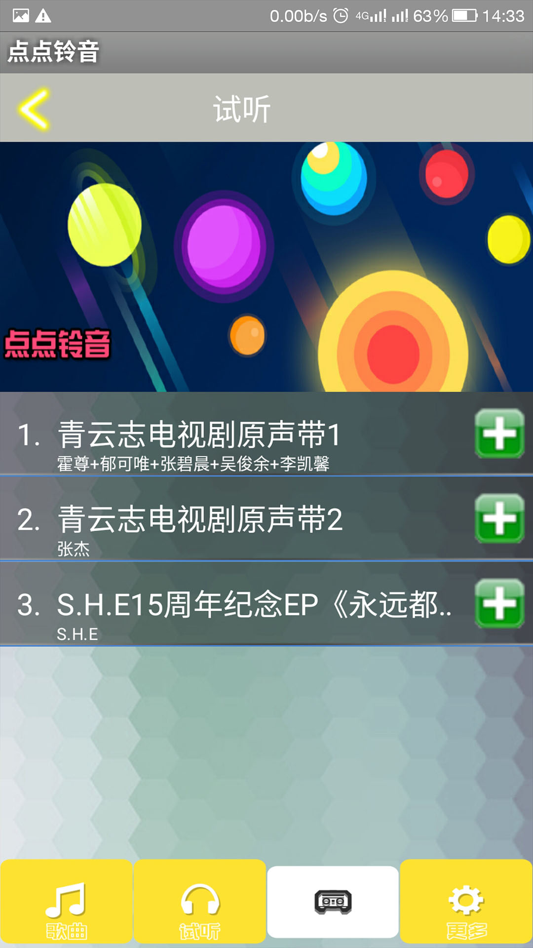 點點鈴音為大家提供在線音樂視聽、本地音樂播放,包月業(yè)務(wù)訂購與退訂,數(shù)字專輯訂購,讓您隨時隨地都能享受音樂帶來的樂趣