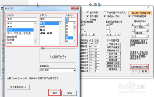 接著選擇字體字號(hào),比如說(shuō),宋體,18磅,單擊確定。字體美觀大方就行了,字號(hào)不宜太小,太小了看不清楚,也不宜太大,太大了容易重疊,不好排版。然后單擊應(yīng)用新的紙張?jiān)O(shè)置。