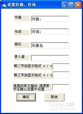 然后在作詞、作曲、名曲欄目填寫相關(guān)信息就可以了,點(diǎn)擊確定
