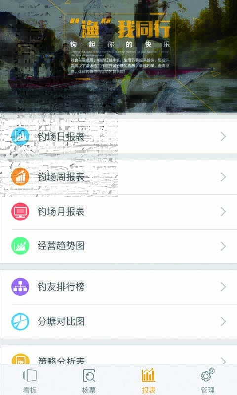 黑漂釣魚(yú)商家版,是專(zhuān)為釣場(chǎng)老板和漁具店老板量身定制的管理應(yīng)用,釣場(chǎng)主可在線發(fā)布動(dòng)態(tài)、在線售票、現(xiàn)場(chǎng)核票及管理、商城管理,針對(duì)釣場(chǎng)經(jīng)營(yíng)狀況進(jìn)行報(bào)表分析,同時(shí)還提供營(yíng)銷(xiāo)的推廣工具,提升釣場(chǎng)競(jìng)爭(zhēng)力,提高漁具店銷(xiāo)售額。【更新日志】