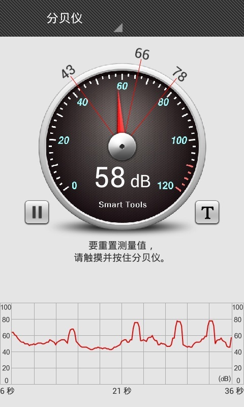 1、點(diǎn)擊開始按鈕測(cè)量分貝。