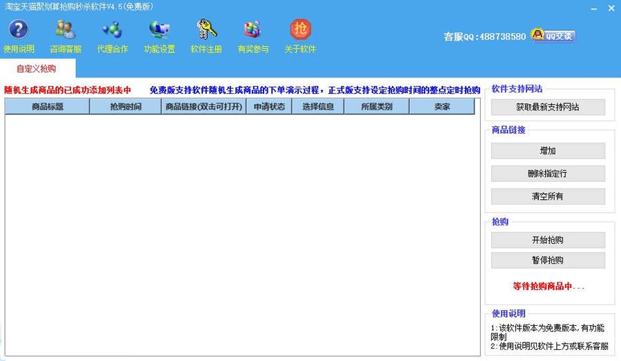 商品增加完成之后,點(diǎn)擊搶購(gòu)按鈕即可,軟件會(huì)自動(dòng)進(jìn)入搶購(gòu)中,無(wú)需你操作什么,最小化軟件窗口即可,一般10點(diǎn)開始搶購(gòu),等搶購(gòu)成功后軟件列表里的“申請(qǐng)狀態(tài)”一欄會(huì)顯示“已成功下單”,這時(shí)候就說(shuō)明已經(jīng)搶購(gòu)成功,自己打開瀏覽器查看訂單,直接付款即可。