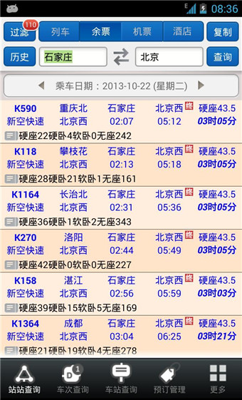 3、車站查詢采用站車次顯示