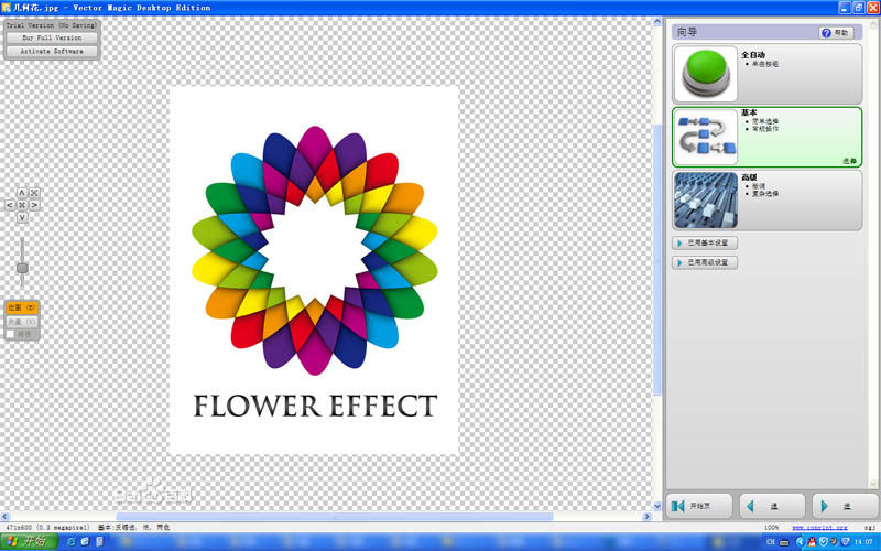 打開之后右側(cè)會(huì)自動(dòng)進(jìn)入向?qū)J?br />一般情況下全自動(dòng)的就可以很好的完成轉(zhuǎn)矢量的工作了