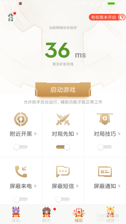 這里就是為重的輔助功能咯,選項在戰(zhàn)績左處,上面所顯示的功能都需權(quán)限開啟,其中最有效的功能屬“對局先知”了,截圖上面就為開啟后的效果,敵自雙方的英雄場、甚至段位都一清二楚。