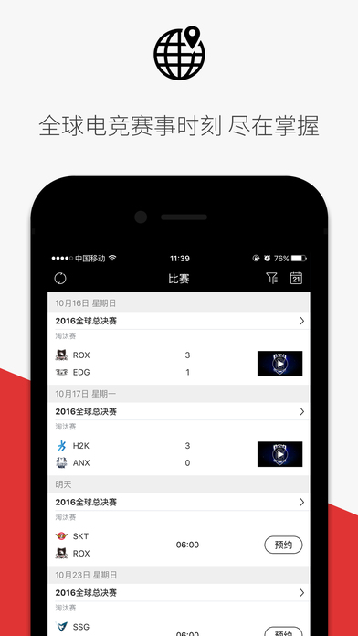 有全球電競(jìng)職業(yè)賽事的視頻直播;有實(shí)時(shí)更新的賽程、比分、視頻、集錦;