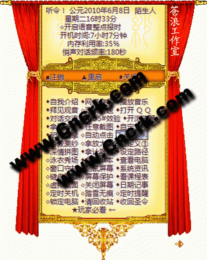 游戲介紹:桌面上可以交流對話的美女,可以和她對話交流(但警告不可以罵她,要不她會發(fā)脾氣。。關(guān)你的電腦?。?。你還可以和她做游戲,等。用鼠標(biāo)點(diǎn)擊她身體的敏感區(qū)域會作出各種各樣的表情。并且她還可以幫你日常管理電腦。