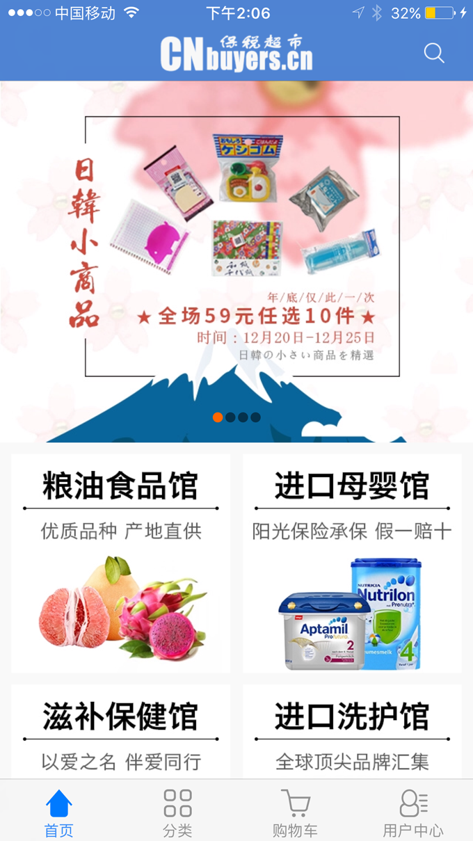 保稅超市CNbuyers.cn-是由浙江糧油運營的跨境進(jìn)口購物商城,國家跨境貿(mào)易電子商務(wù)試點項目,為國內(nèi)客戶提供值得信賴的原裝進(jìn)口商品,讓您足不出戶就淘遍世界。