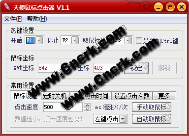 【天使鼠標點擊器】是一款網(wǎng)絡上最新的鼠標自動點擊器,它完全免費,無任何使用次數(shù)和使用時間限制,如果你喜歡玩網(wǎng)絡游戲、RPG等一些單機游戲,有可能會需要大量的點擊鼠標左鍵或者右鍵,如果頻繁的手工點擊鼠標的話,勢必會縮短鼠標的使用壽命,這個時候【天使鼠標點擊器】就會派上用場了,有了它,你就可以解放你的手指啦!只要設定好參數(shù),讓它幫你點擊吧!點擊頻率、點擊次數(shù)、點擊時間都可以任意調(diào)節(jié)!并且軟件隨時更新,只要你的一個反饋,一個電話,或者個一個留言,我都會認真聽取每個朋友的意見