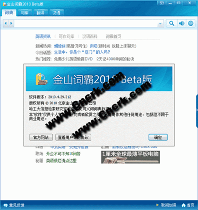 金山詞霸 2010.6.3.266 本地安裝版 簡體中文官方安裝版 《金山詞霸2010 Beta版》的漢字查詢功能可以在聯(lián)網(wǎng)狀態(tài)下查詢到符合漢字編碼國家標(biāo)準(zhǔn)的全部漢字。對于不符合漢字編碼國家標(biāo)準(zhǔn)的的漢字我們不保證能夠查詢。