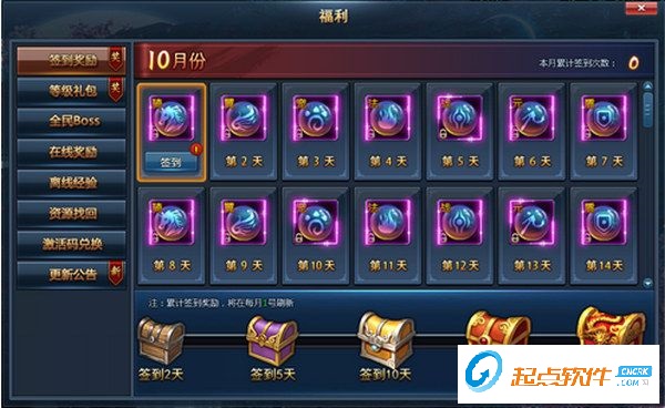 功能分類:每日簽到、在線獎(jiǎng)勵(lì)、離線經(jīng)驗(yàn)、資源找回、激活碼兌換簽到獎(jiǎng)勵(lì)