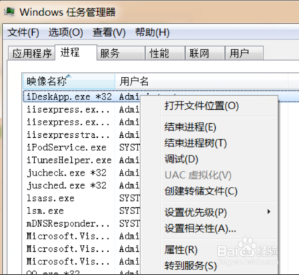 選擇結(jié)束進(jìn)程,點(diǎn)擊結(jié)束后!iDesk助手就會關(guān)閉了,電腦桌面上就看不到那個(gè)圓圈了