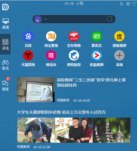 3、在桌面擁有更多的選擇項(xiàng)目您可以選擇綜合信息、購物、影視、游戲。